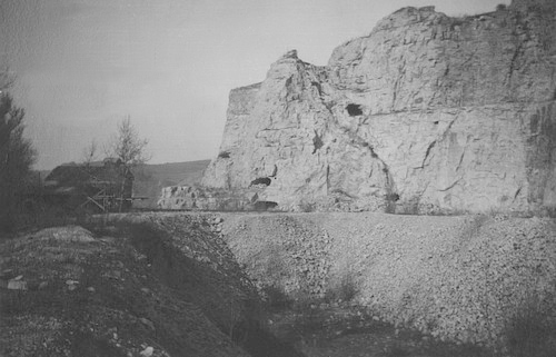 Lom V Kozle - Alkazar. Nalevo stojí budova lanové dráhy přes Berounku. Dolní etáž lomu byla později za druhé světové války zasypána